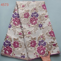 4573 yeni varış afrika çiçekler brokar dantel kumaş 5 Yards nakış yaldızlı jakarlı şam dantel kadınlar için gelinlik