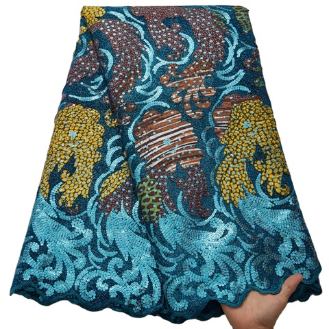 शादी के लिए 2733 मुफ्त शिपिंग अफ्रीकी अनुसिन टलल फीता कपड़े के साथ सीक्वेन मोम फीता कपड़े