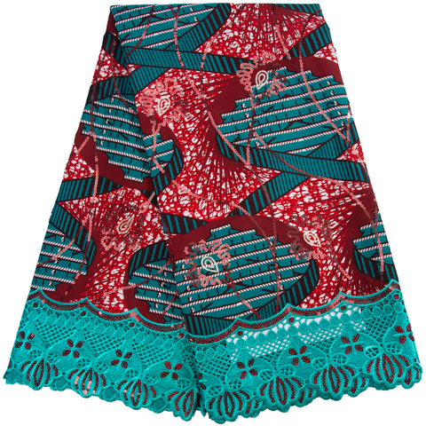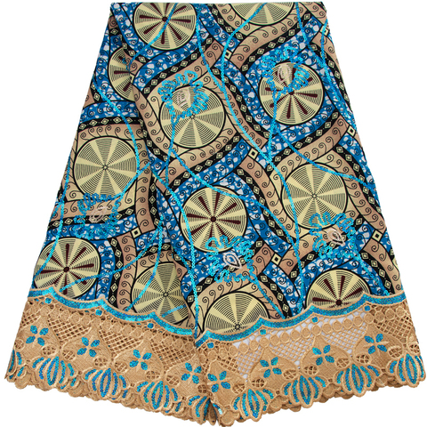 कारखाने की कीमत थोक नए डिजाइन 4 गज + 2 गज की टन सोने का मोम फीता कपास अफ्रीकी प्रिंट कपड़े